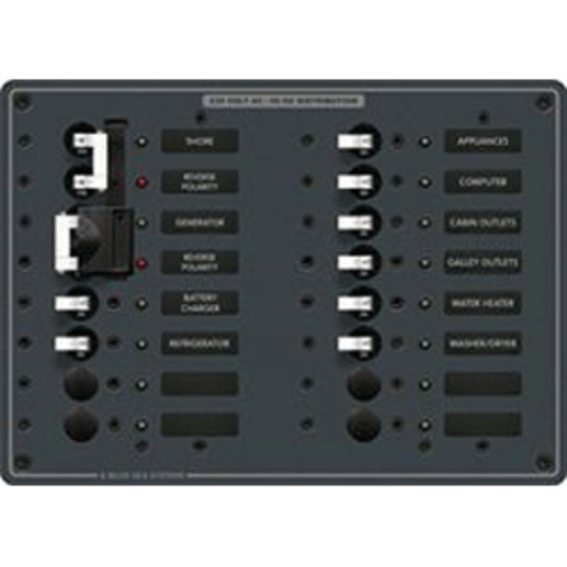 AC Toggle Source Selector (European)PN:8568White Switches(2) 16A Double Pole Circuit Breakers Installed(8) 8A Single Pole Circuit Breakers InstalledFeatures:Double pole AC main circuit breakers with installed lockout slide Prevents connecting both AC sourc