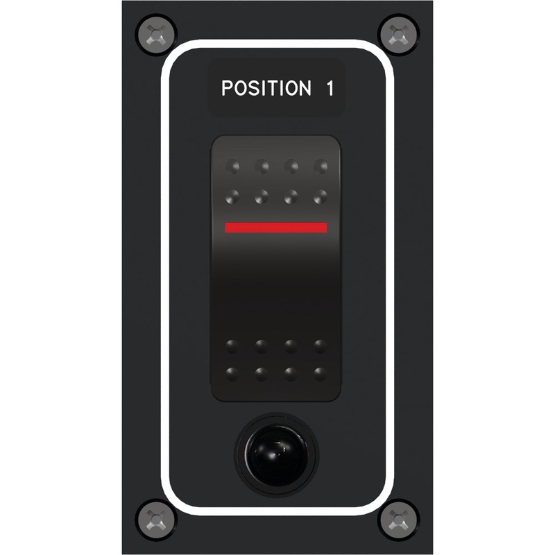 DC 1-Position Vertical Rocker Switch PanelDC 1-Position Splash Proof Vertical Circuit Breaker Rocker Switch PanelWidth: 2-1/4"Height: 4"Depth: 3"Current: DC Specifications:Waterproof: YesAC/DC: DCMax Breaker Quantity: 1Waterproof Rating: WaterproofVoltage: