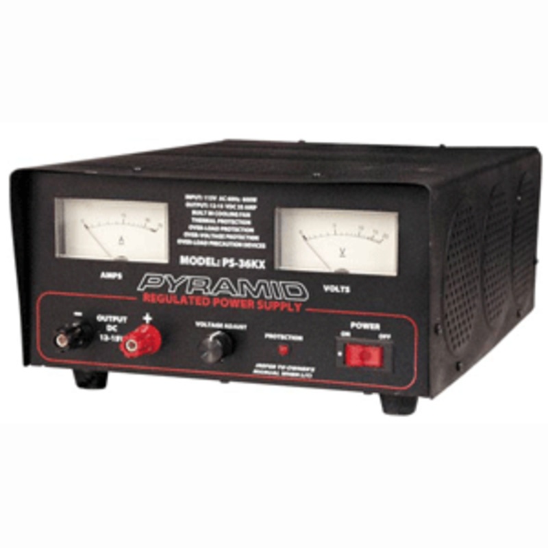 PS36KXPerfect for Home, Shop and HobbyistBuilt-in Cooling FanInput: 115V AC, 60Hz, 600 WattsOutput: 12~15V DC(Adjustable)32 AMP Constant/35 AMP SurgePowers 12V DC Devices such as Cellular Phones, CB Radios, Scanners, HAM Radios, Autosound Systems,etc.Screw