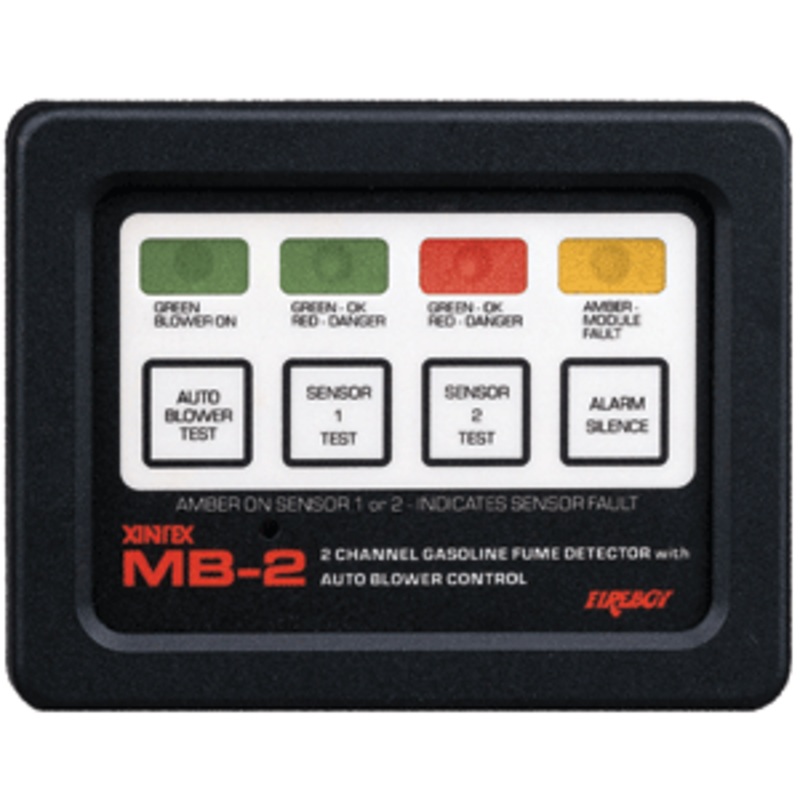MB-2-R Gasoline Fume DetectorIncludes the features of the M-2A:Microprocessor-controlledLow profile, water resistant designTwo-channel monitoring capabilityPlug-in sensors (second sensor optional)Fault light alarmFault lights to indicate a malfunction in e
